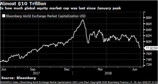While the S&P/ASX 200 has risen to its highest levels since the GFC, globally the Wall Street Journal recently published a chart illustrating that there had been a nearly $US10 trillion decline in world exchange market capitalisation since a peak in January 2018. The Russell 3000, a broad index of US stocks, peaked on January 31 and has pulled back ~4.5% since then.