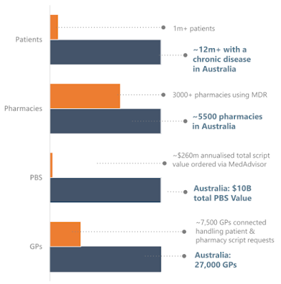Meanwhile, fund services group Mainstream (ASX code: MAI) and drug prescription adherence tech play Medadvisor (ASX code: MDR) chart out some of their target markets (equitable Investors Dragonfly Fund has positions in both companies).