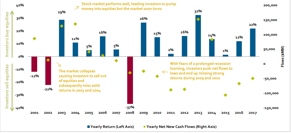 While Morgan Stanley notes that investors tend to cash in or out of equities at "inopportune times"