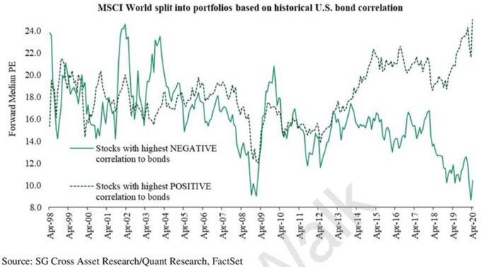 Stocks that correlate with bonds trade on 24x PE; stocks that don't trade on 8x